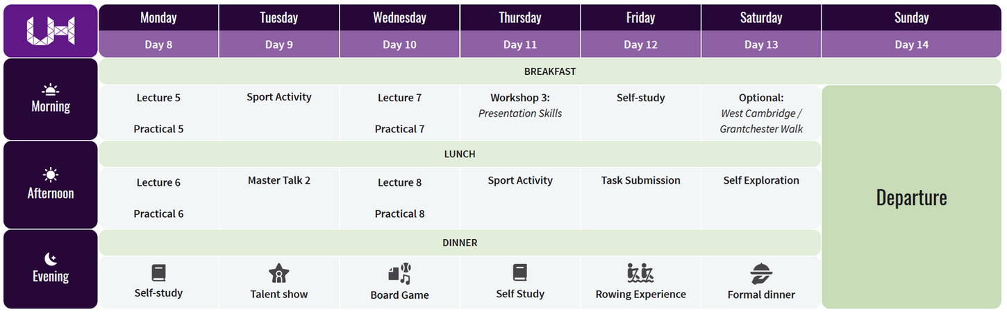 A rich social and cultural schedule, including excursions to London and Oxford.
